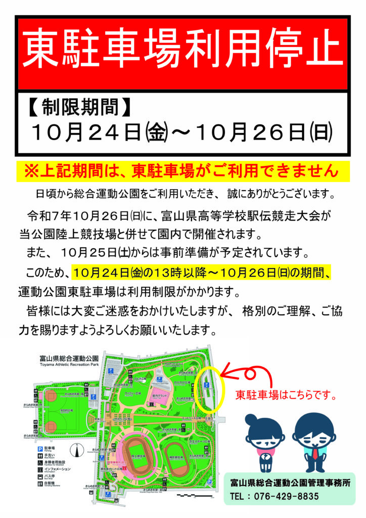 【重要】10/24~10/26東駐車場封鎖のお知らせ