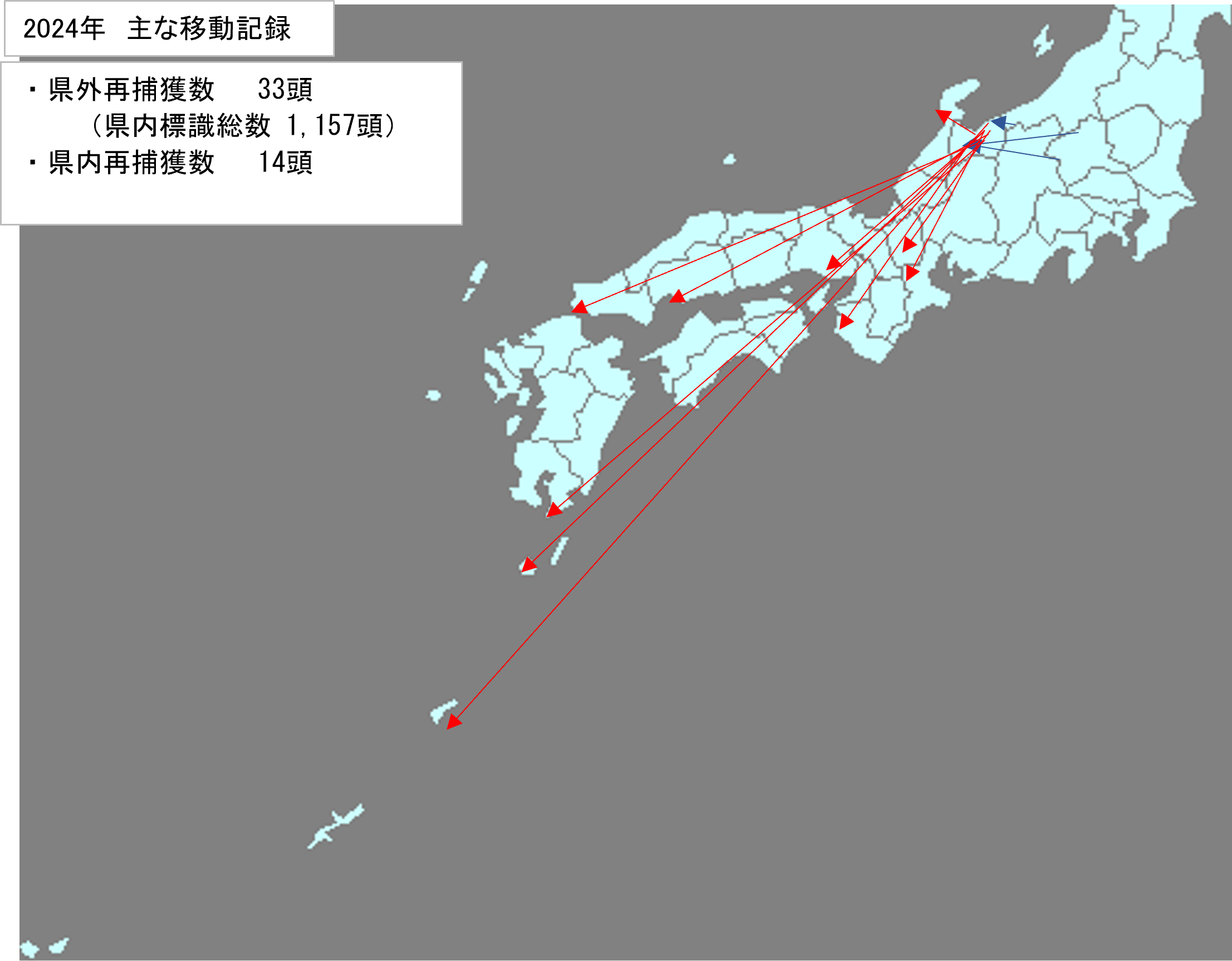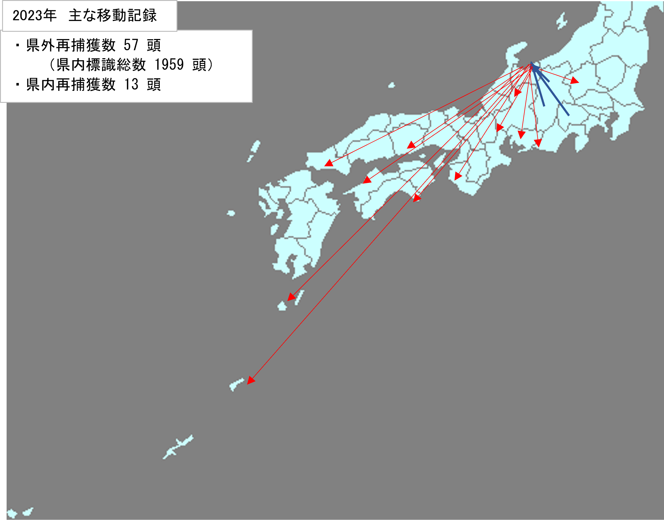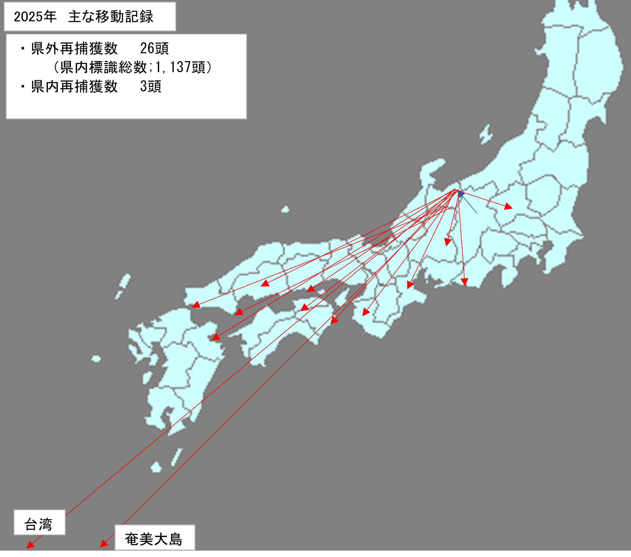 - 県外マーキング個体が再捕獲された数