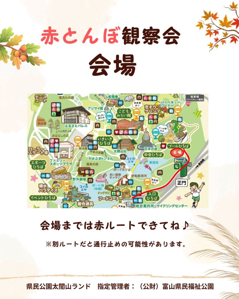 イベント概要 | ○開催場所:プールひろば東側の原っぱ(新造池西側の端)→集合場所も同じです。 ○その他 :申込不要、雨天中止、参加費無料 |