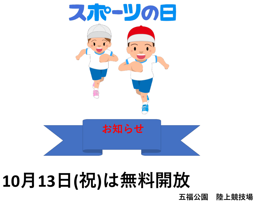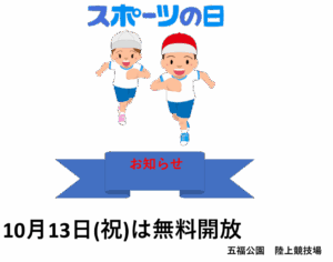 10月13日(月・祝)スポーツの日は陸上競技場を無料開放!
