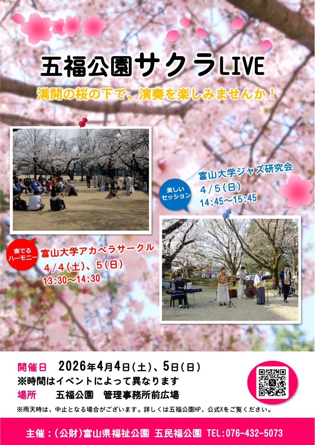 4月4日(土)・5日(日)に、「五福公園サクラLIVE」を開催いたします。