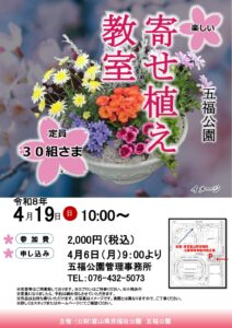 令和8年4月19日(日)に、楽しい寄せ植え教室を開催いたします。