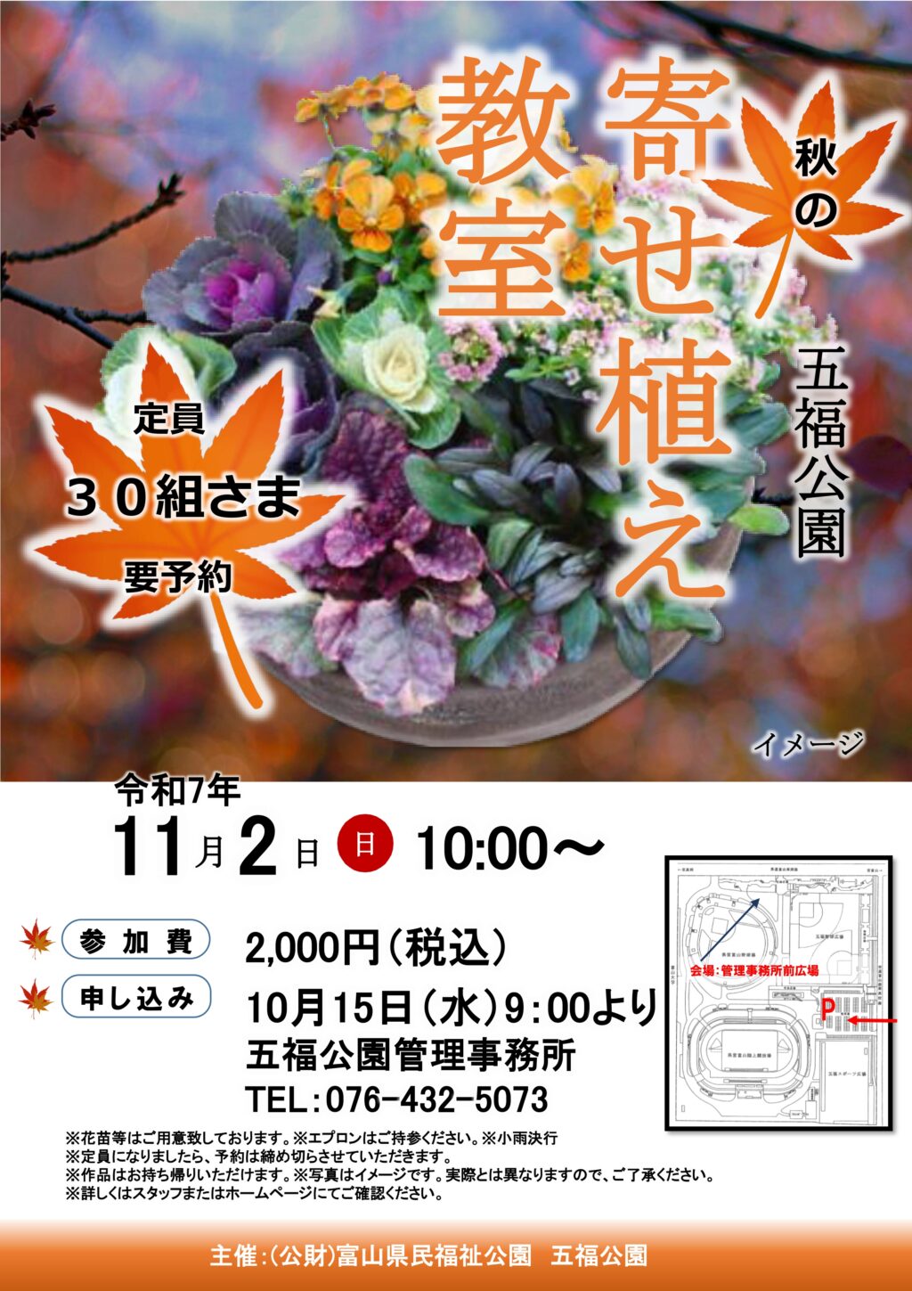 令和7年11月2日(日)に、秋の寄せ植え教室を開催いたします。