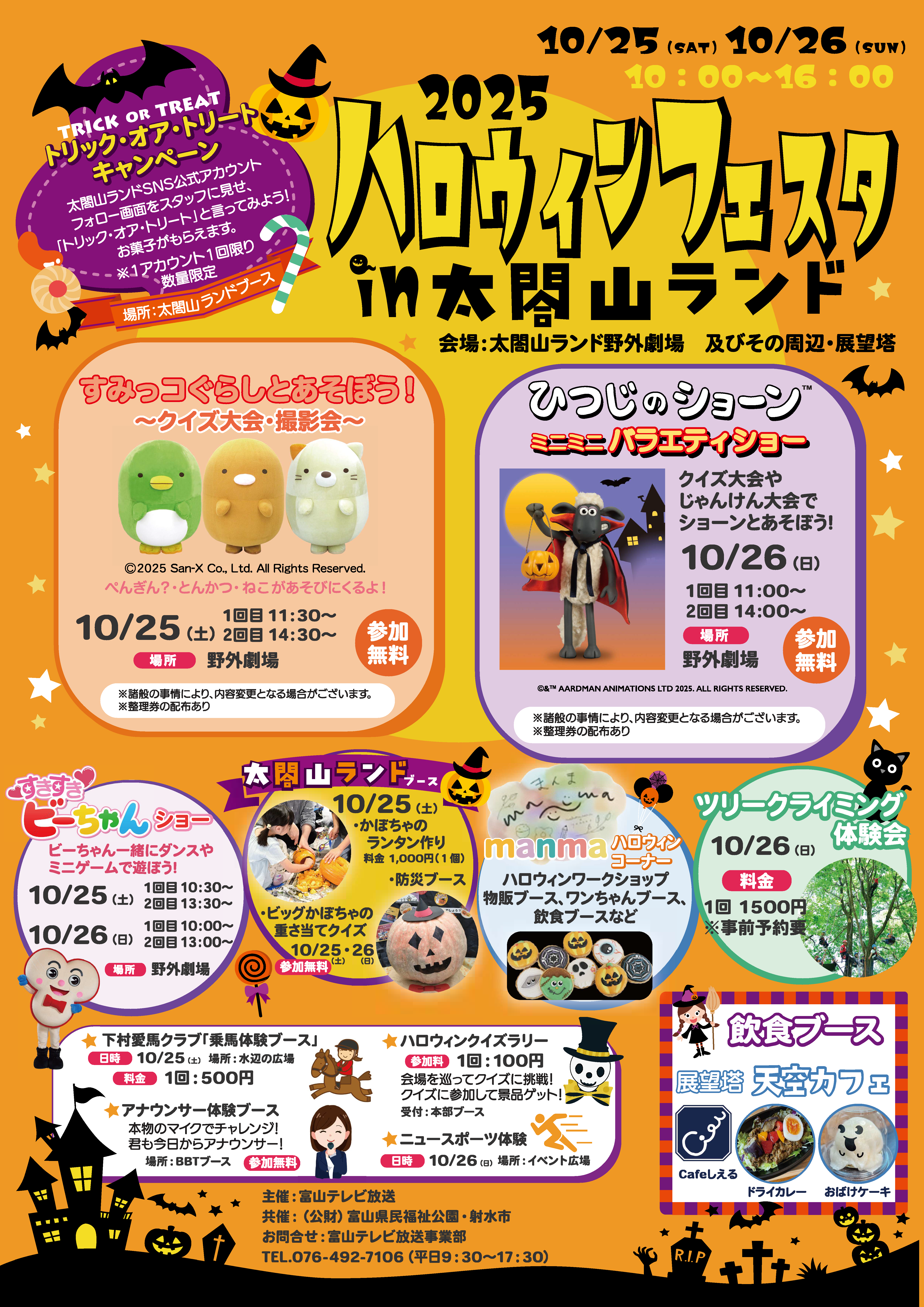 「ハロウィンフェスタ」開催! キャラクターショーや、クイズラリーの他、ハロウィンにちなんだイベントを開催します。 開催場所野外劇場周辺