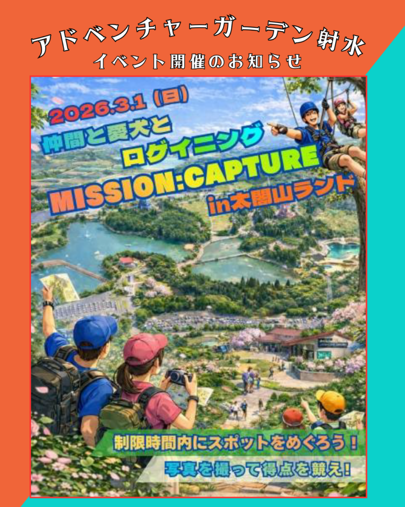広大な太閤山ランドを舞台に、園内に散りばめられた撮影ポイントをチームを組んで制限時間内に巡り、写真撮影を楽しみながらミッションに挑戦する体験型アドベンチャーイベントです。