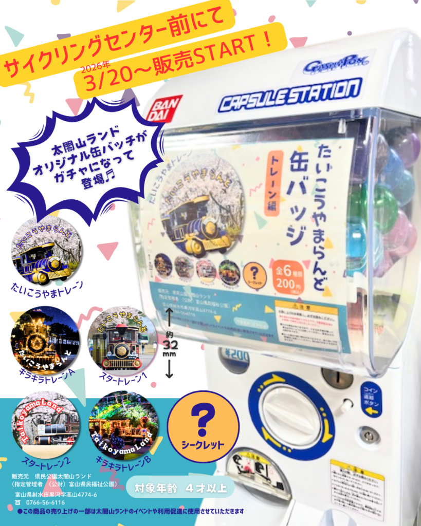 【3/20~販売START】 太閤山ランドオリジナル缶バッチがガチャになって登場!