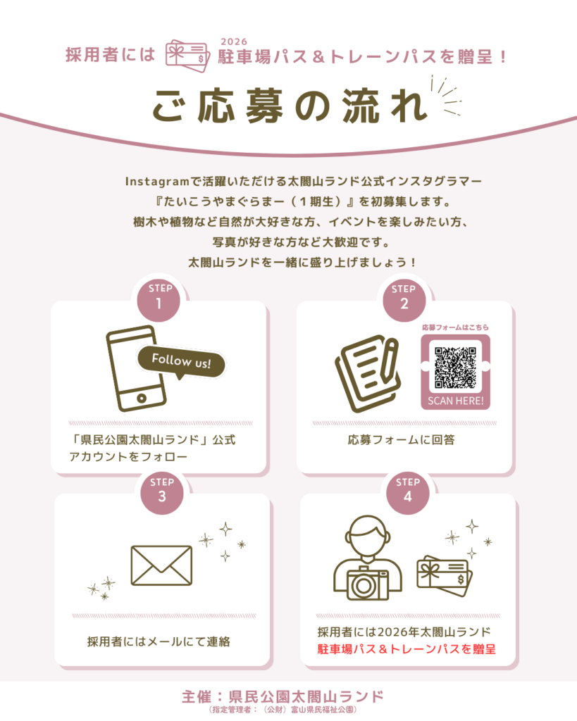 *採用された方には!2026太閤山ランド駐車場シーズンパス&トレーンシーズンパスを贈呈!