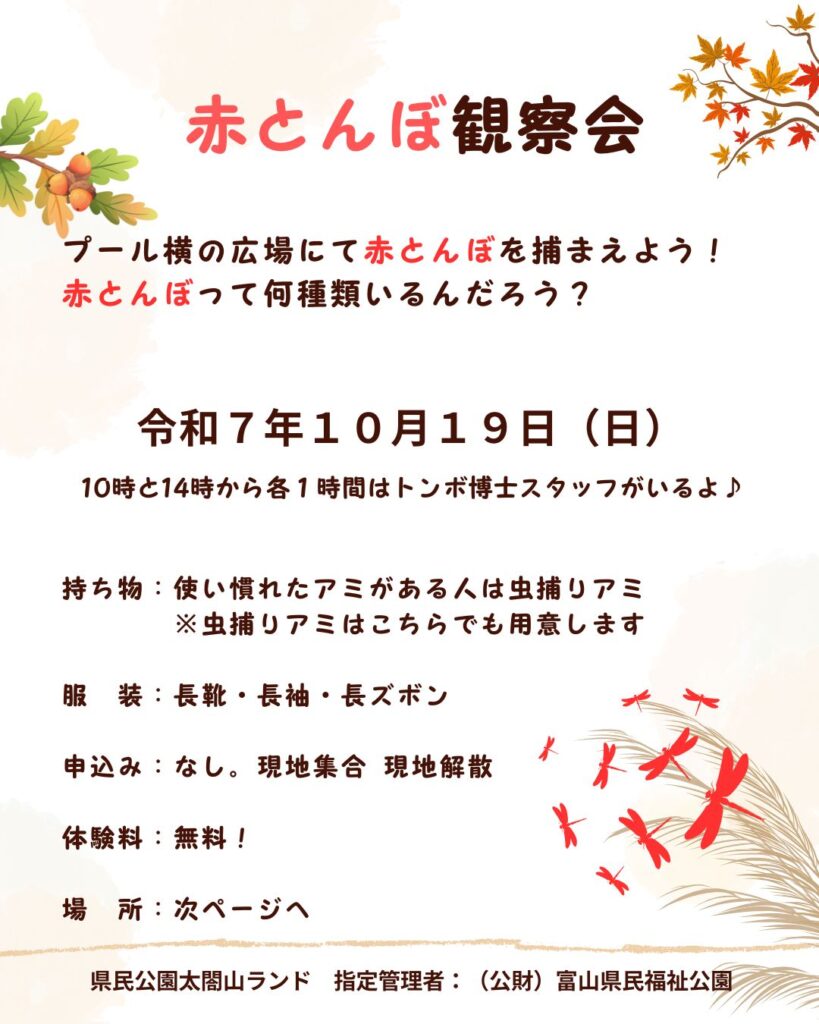 【10/19開催】「太閤山ランドの赤とんぼ観察会」開催♪